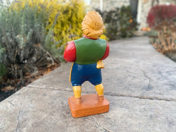 This statue was manufactured by the Alexander Corporation located in Philadelphia, PA. It’s approximately 12″ tall and is made of painted chalkware, similar to plaster. Chalkware statues like this one would have been displayed on the bar top or on the bar back to advertise Old Reading Beer Ale Porter to patrons. The character’s name was Old Gus, he’s depicted as an older Pennsylvania Dutch Brewmaster of the Old Reading Brewery Inc. and was pictured on a lot of the brewery’s advertising dating from 1933 into the 1950’s.