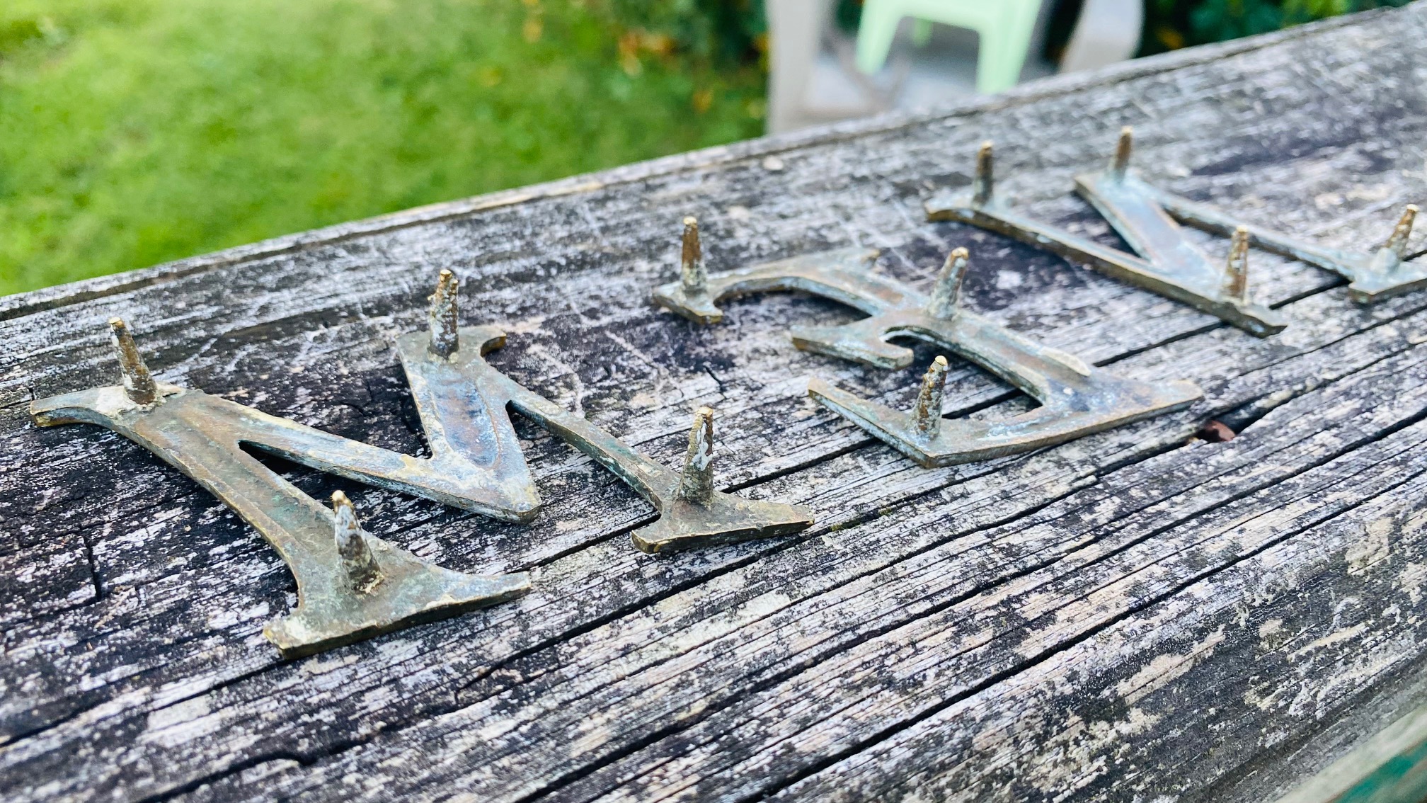 Note: The holes across the center of the sign would originally had batches of colored hair tied to the sign to display each die color option.