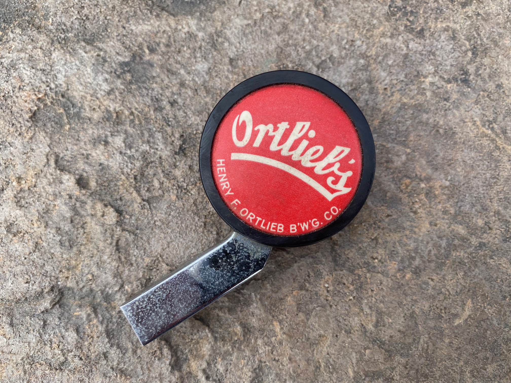 Here is a Jolly Scot Ale Sidewinder from the Robert H. Graupner Brewing Company located in Harrisburg, PA. This Jolly Scot Ale Sidewinder is from the 1940s era and is in excellent condition considering how old it is. The face on this knob is celluloid mounted on a forest green bakelite body with a chromed metal stem.